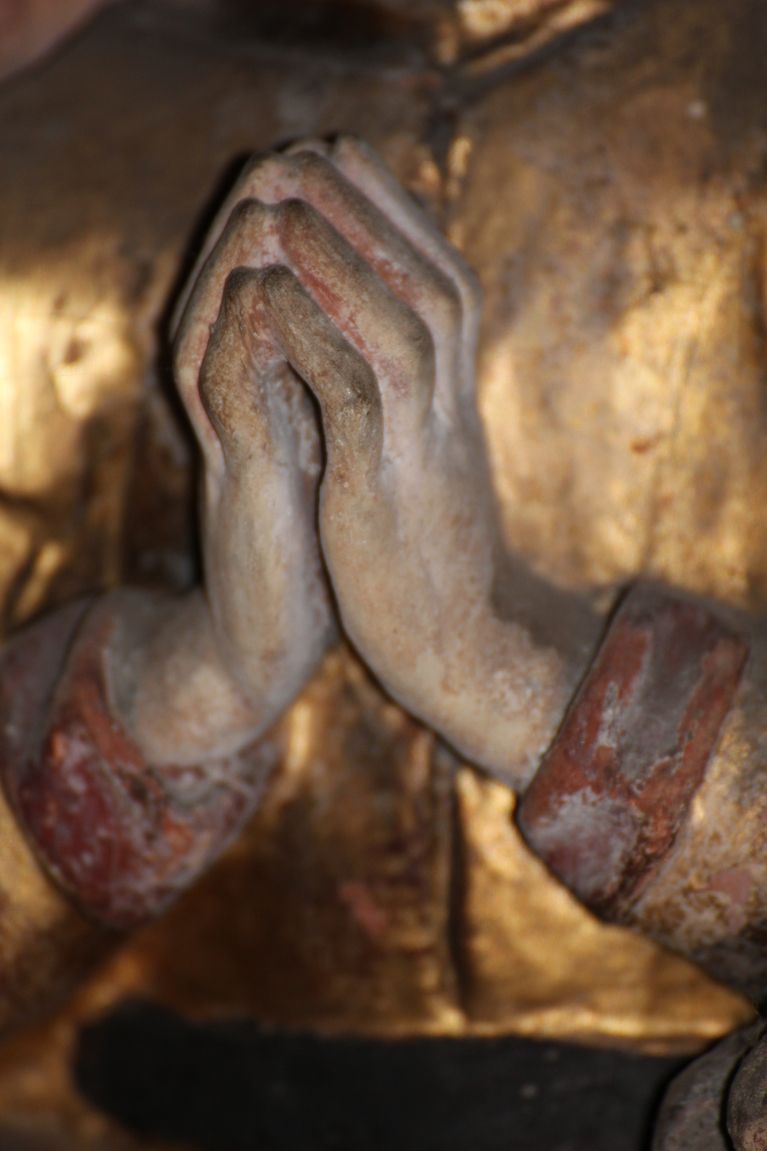 AltarDie betenden Hände des Crossener Altars als Zeichen dafür, dass uns unser Glaube überall begleitet. Ob wir zu Hause bleiben oder in die Welt reisen - wenn wir zur Ruhe kommen, still werden, uns Zeit nehmen für ein Gebet, dann sind wir ganz bei uns und unserem Glauben. Ein schönes, tröstliches Gefühl.